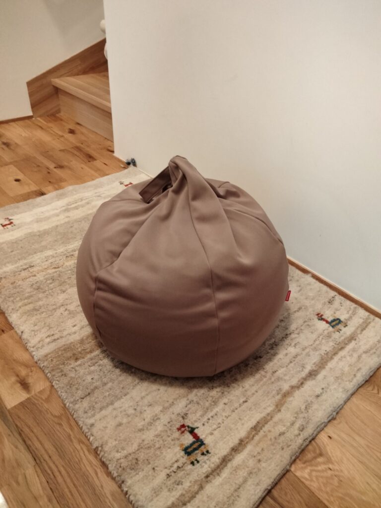 でも、家族がリラックスできるような柔らかい空間がほしいなと思い、ギャッベとこの【人をダメにするクッション】ならいけるかもと考えたのがキッカケです。