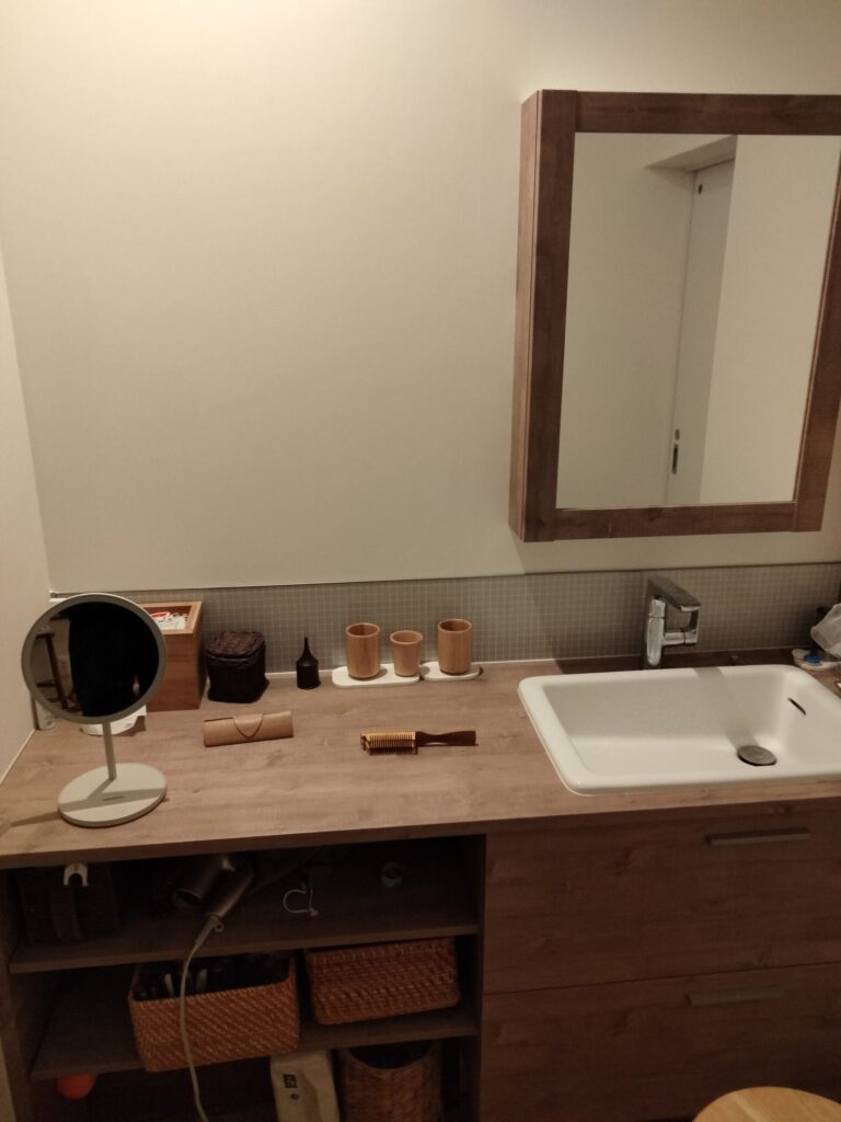 我が家の洗面所 真ん中が薩摩柘植の櫛