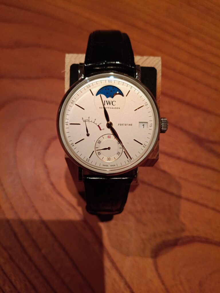 - 購入の決め手: ポートフィノが好き過ぎて上位機種も欲しいなと。美しいムーンフェイズ。8日間のパワーリザーブで止まらない。このスペックにしてはとてもお買い得だと思います。